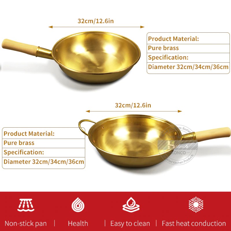 Konco Pure Copper Pan Copper Pot Chinese Wok Frying Pan Brass Frying Pan Cookware Cooking Wok Shopee Indonesia