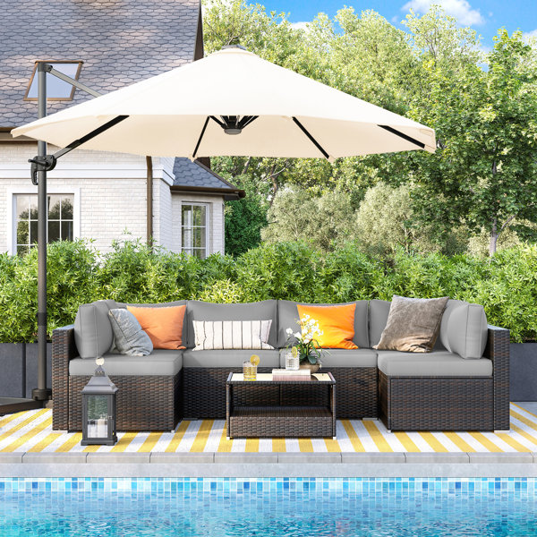 Aleko Outdoor Garden Furniture Patio Rattan Sectional Set Table And Pillows For Sale Online