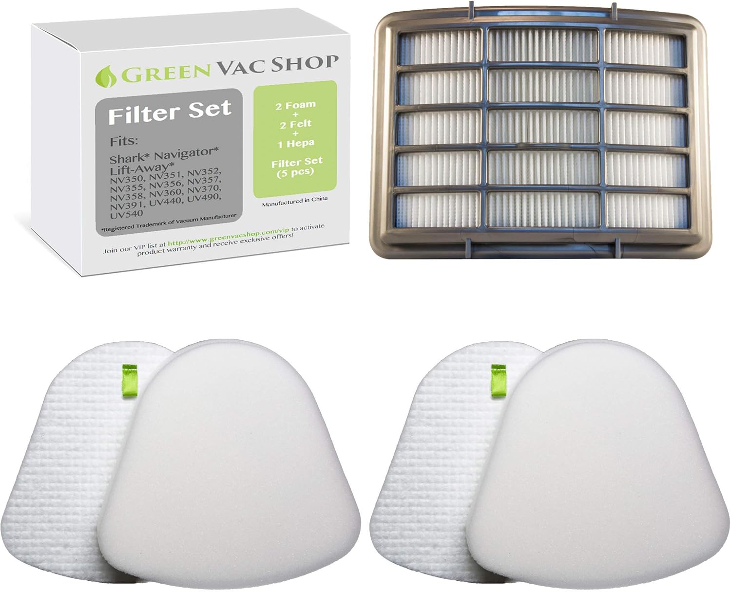 Amazon Com Greenvacshop 2 1 Pack Shark Navigator Lift Away Nv350 Nv351 Nv352 Nv355 Nv356e Nv357 Nv360 Nv370 Nv391 Uv440 Uv490 Uv540 Replacement Filter Set 2 Foam 2 Felt 1 Hepa Filters Xff350 Xhf350