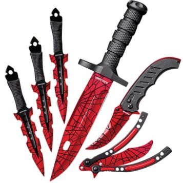 Fingerhut Black Legion Red Fury Spider 6 Pc Knife Set