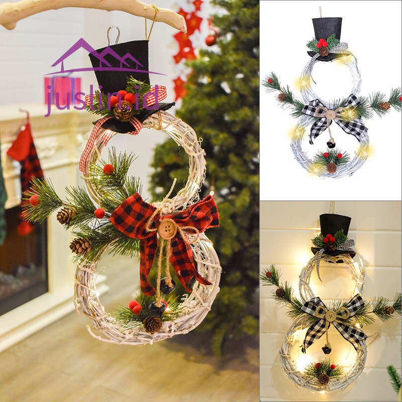 Christmas Wreath Hanging Decor Front Door Garland Snowman Pendant With Led Lights Home Party Holiday Shopee Indonesia